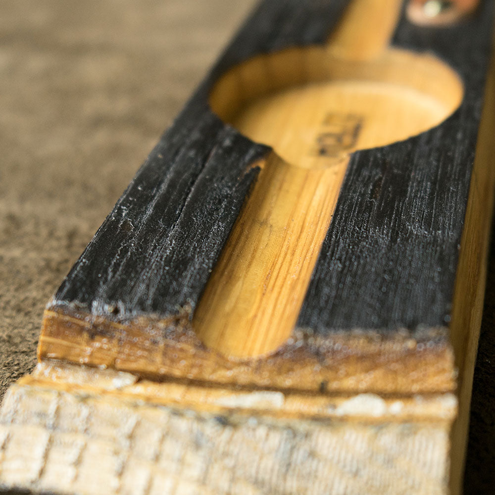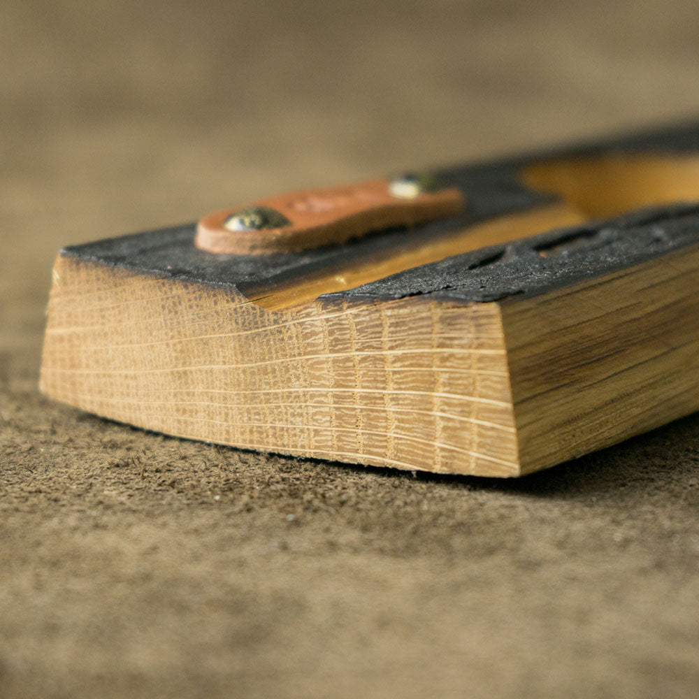 This beautiful piece is made from the stave of a Tennessee Whiskey Barrel and measures approx. 12" long by 3.5" wide. It includes personalization up to 3 initials on a custom leather tag.