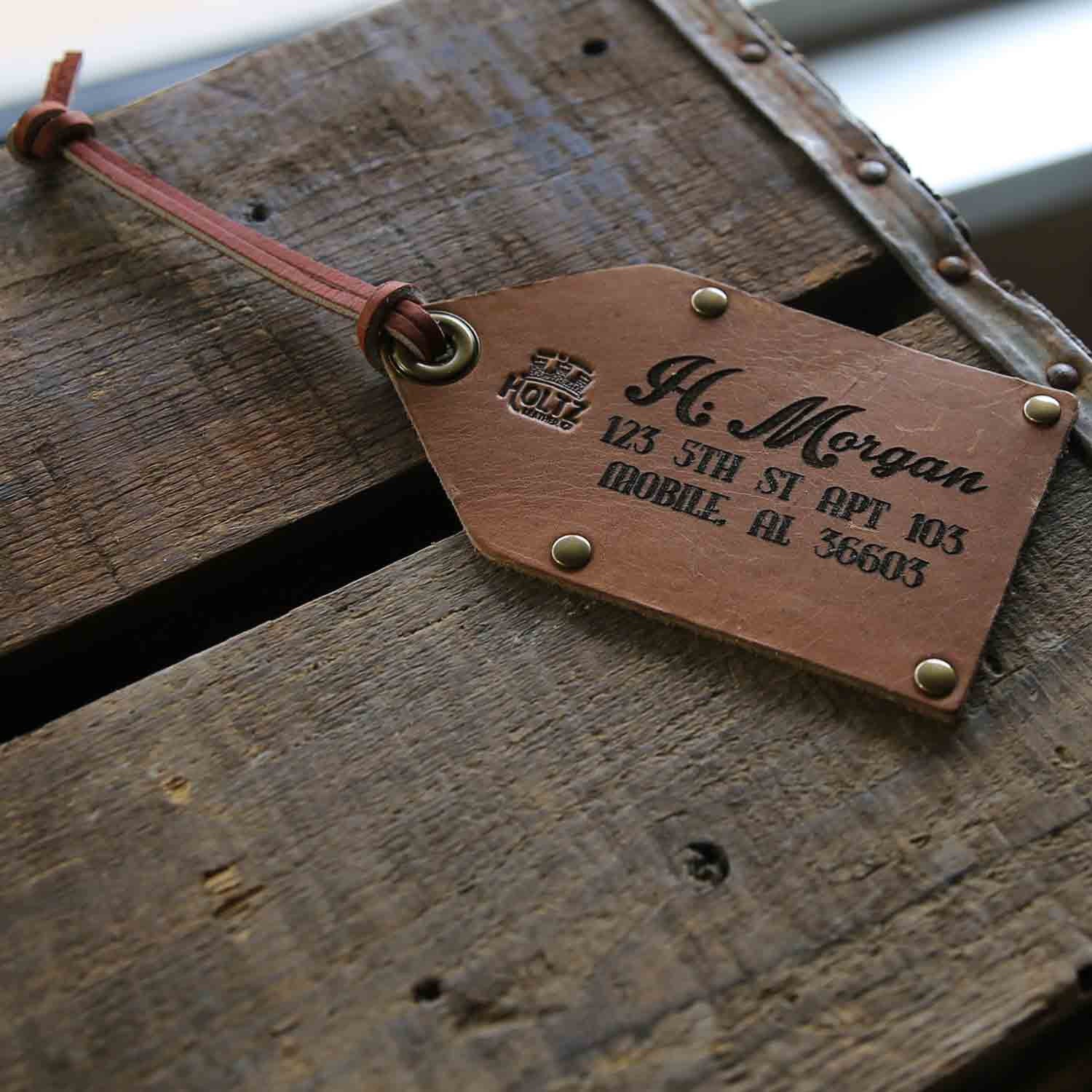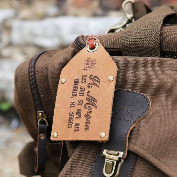We personalize the Full Grain Leather with your name and address or phone number. Choose from two personalization options. Style 1 features a beautiful, timeless script and vintage font. Style 2 features a simple design for a classy look. Both are sure to add a touch of style to your luggage!